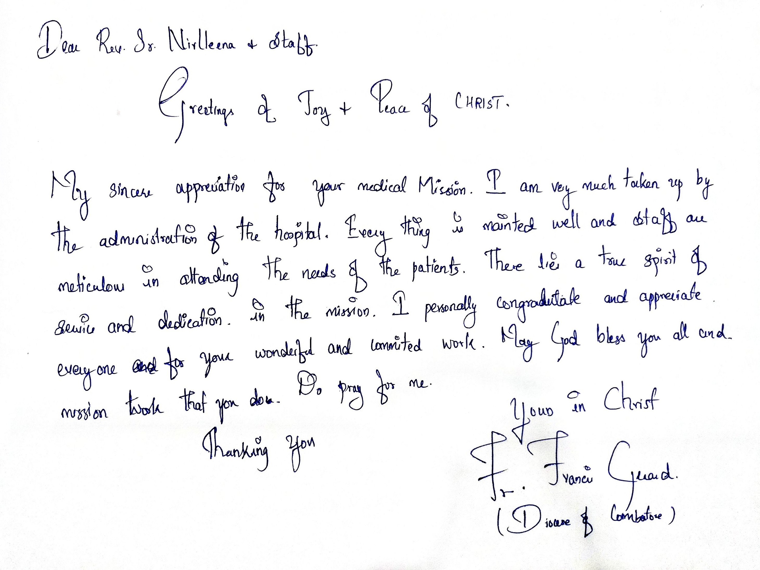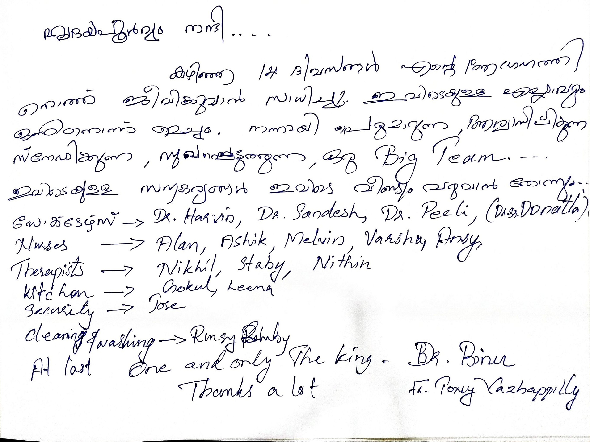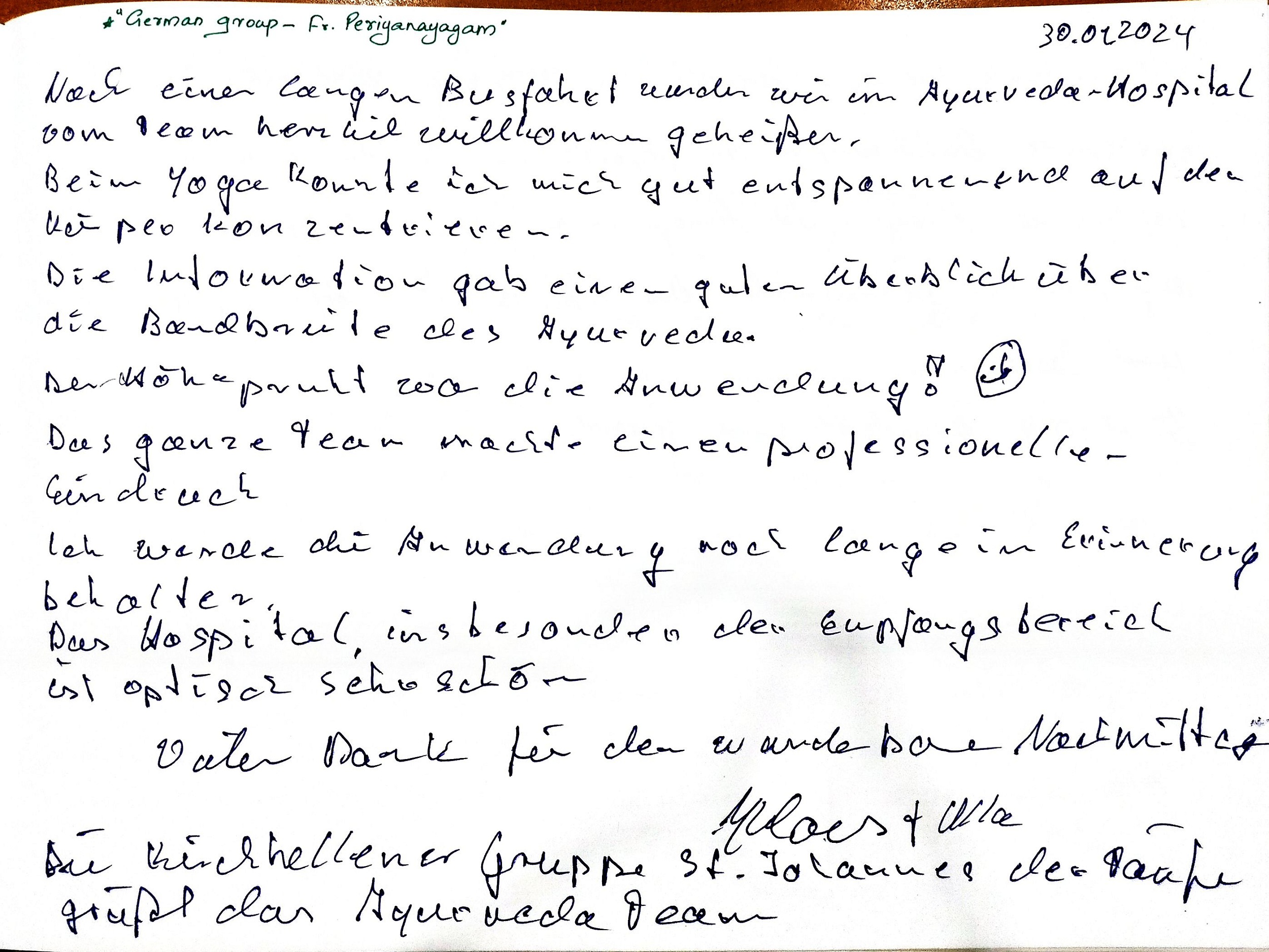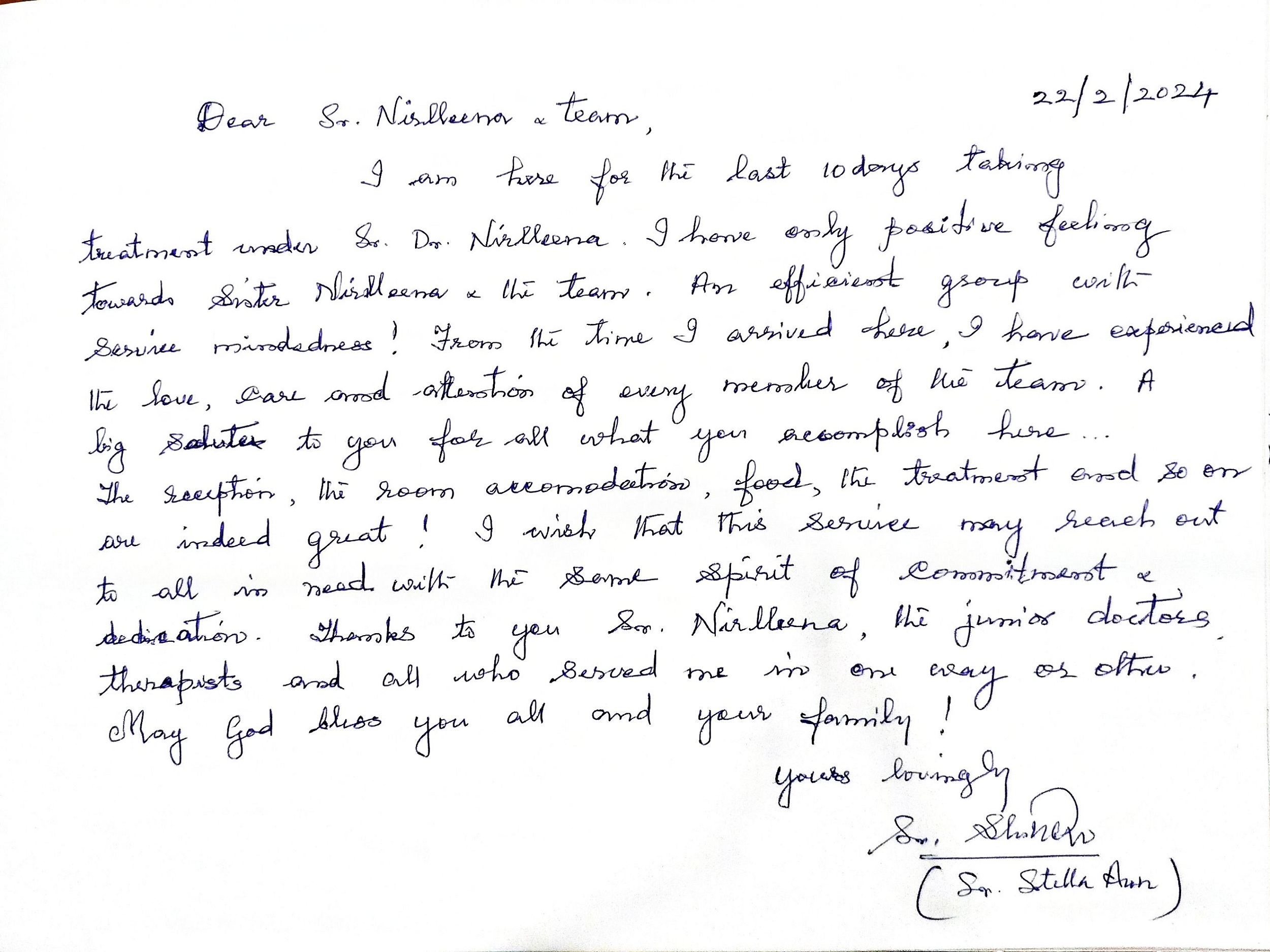 My stay at Jubilee Ayurveda was truly a 'home away from home.' I am deeply grateful to the doctors, nursing, and staff for creating a family-like atmosphere of care. Healing feels natural here. May God continue to bless this hospital and all who serve here.