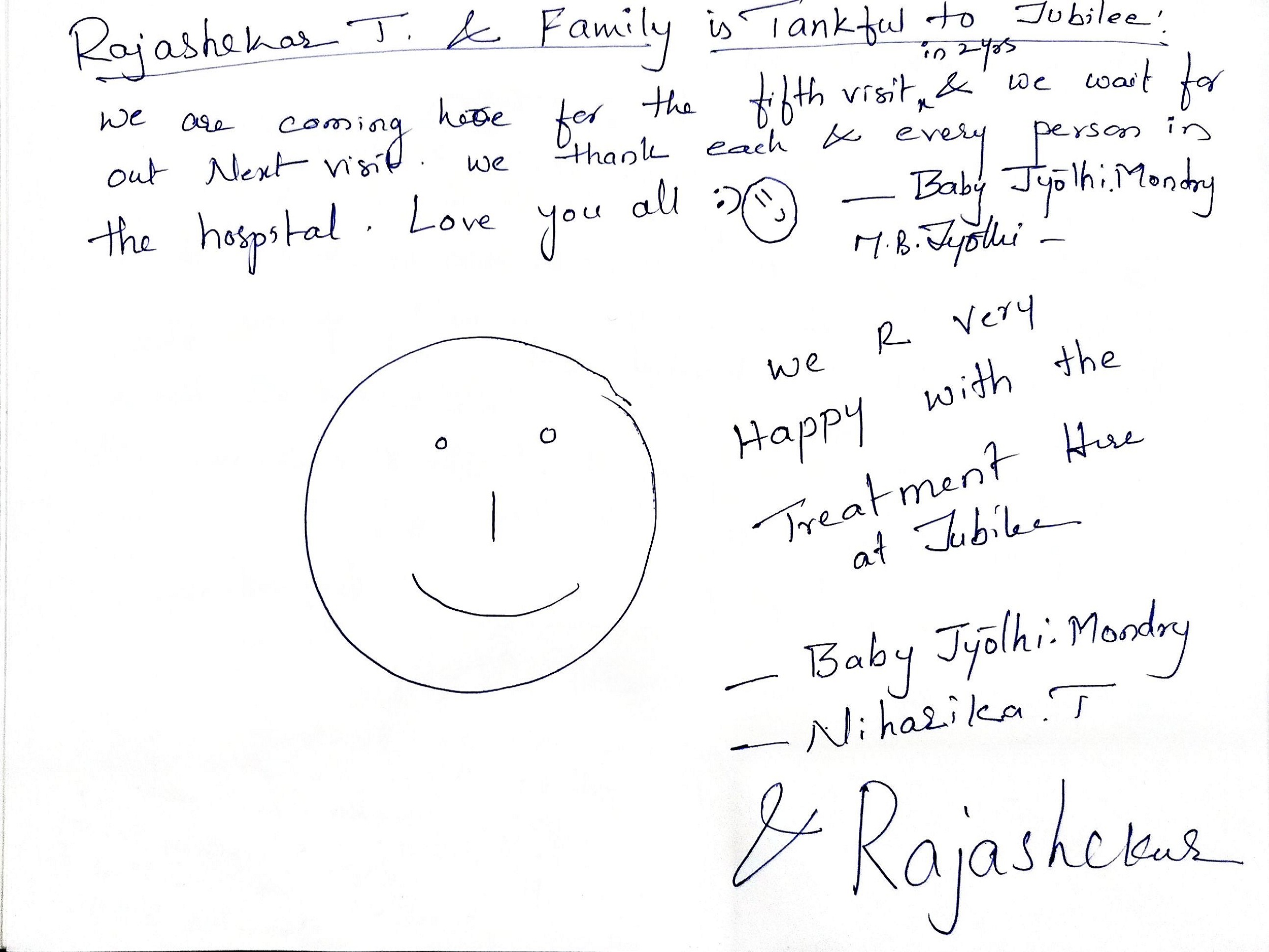 I came from Qatar for treatment at Jubilee with hope, and I was not disappointed. The doctors, staff, & therapists cared for me like family. The treatment, stay, & facilities were excellent. The team’s prayer before therapy touched my heart. I’ll surely recommend Jubilee to all.